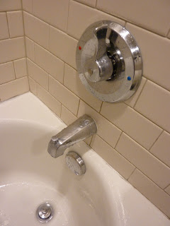 All the taps in the apartment were switched so hot goes to cold and cold goes to hot. In addition, we did something particularly devilish to the bathtub. Usually the handle for the tap faces down when the water is off, and you move the handle up counter-clockwise through cold to hot. In our modified system, the handle starts out facing up when the water is off, and you can turn the knob one way to get hot water, and the other way to get cold. Those are the only two temperatures available… the cold and hot streams cannot be mixed, as the water turns off in between. A bit subtle perhaps, but probably makes for a very confusing bathing experience.