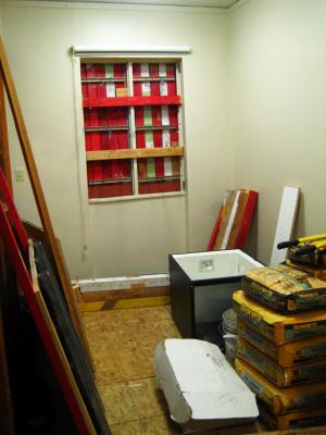 We also needed to barricade the window. This was to be accomplished with 4x4s and concrete. Here’s the form for the window defense; concrete was to be poured in later: