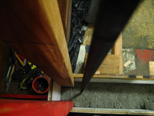 At this point, after several weeks of planning and gathering materials, we were less than a week from the event. However, the morning after these pictures were taken, a Housing employee walked through Hell and, suspicious that Robb’s entrance was covered with black plastic and a sign that said “Frosh Only”, peeked behind. Needless to say, when Housing found out that the room had been emptied of everything (including the door and window) except construction materials, 4x4s on the window, and a partially poured door barricade, they weren’t very happy. They told Brad, the hovse president, that if it wasn’t restored to its original condition within a couple of days we would be paying for it. So sadly, our Hellride was shut down by Housing. But we still held a makeshift Hellride that night, which was still pretty fun even though The Ride only lasted a couple of seconds.